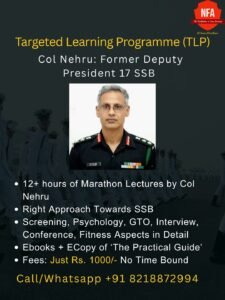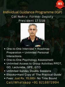 Col. Nehru sir guided me and pointed out the areas where I lacked and how to work on it. He also helped me stay motivated and consistent, since appearing for defence examinations and SSBs is a long process. The NFA group activities made me familiar with the group tasks due to which I was able to do well in them. All in all Nehru sir played a huge role in my preparation for the SSB. I would say it is the Best SSB coaching in India.