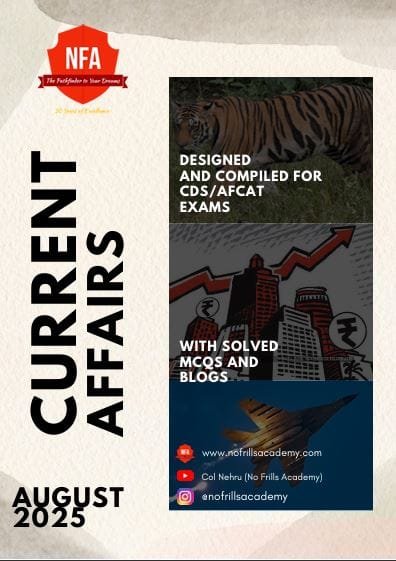 Prepare effectively for your defence exams with NFA’s Current Affairs August 2025 eBook, specially designed for NDA, CDS, AFCAT, and CAPF aspirants. Comprehensive coverage of monthly events with 50+ MCQs.